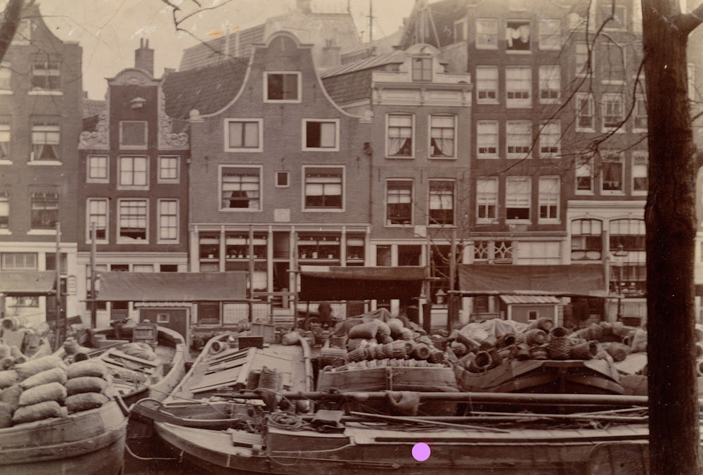Het was er een drukte van belang, we lezen bij Wagenaar: ‘De Fruitmarkt is dikwijls zo zeer bezet met manden en tonnen dat er de rijtuigen bezwaarlijk voorbij kunnen. ‘T Gerecht heeft hierom op den 28ste januari des jaars 1755 gekeurd dat er voor negen uur des morgens niet over de fruitmarkt gereden mag worden’. Langs de kade konden zesendertig schuiten afmeren. Op de wal stonden veel houten huisjes en kramen. Er was door de bewoners veel verzet tegen de drukte maar toch werd de markt hier tot 1895 gehouden.